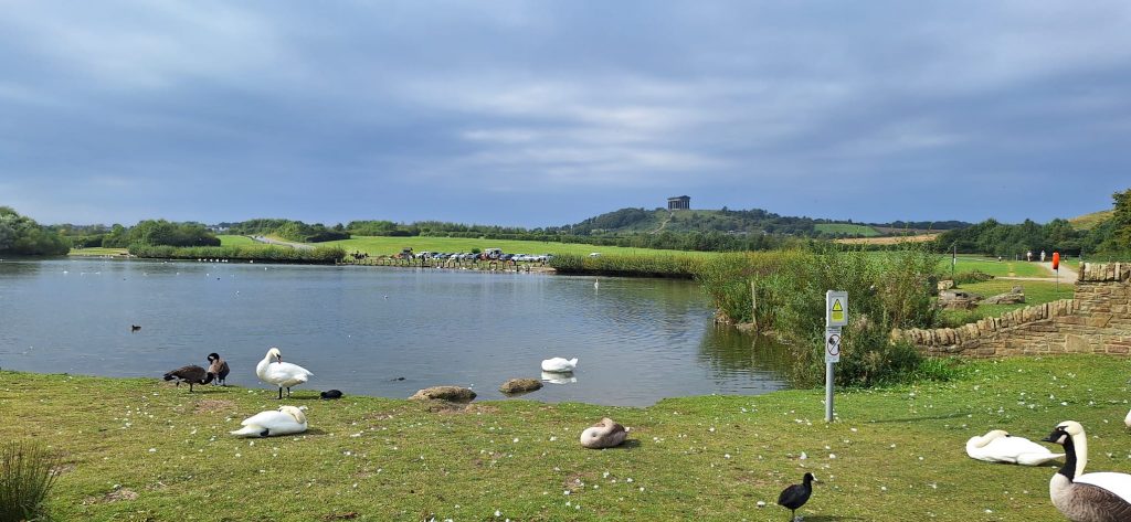 After a quick pint in the local pub we continued to The Penshaw Monument also owned by National Trust. This 70ft structure was built as a memorial to the Earl of Durham and is based on The Temple of Hephaestus in Athens. It was an uphill walk and then Dave decided as the walk wasn’t long enough that we needed to walk back down and go into the country park to see the lake.