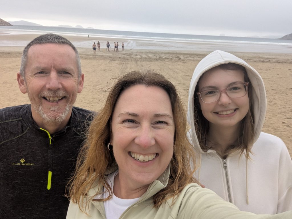 Around 6, Dave started on the bbq and we had a feast of burgers, veggie sausages and lamb koftas. With the rain holding off we ate outside, did the washing up and had a few games of Dobble before turning in.