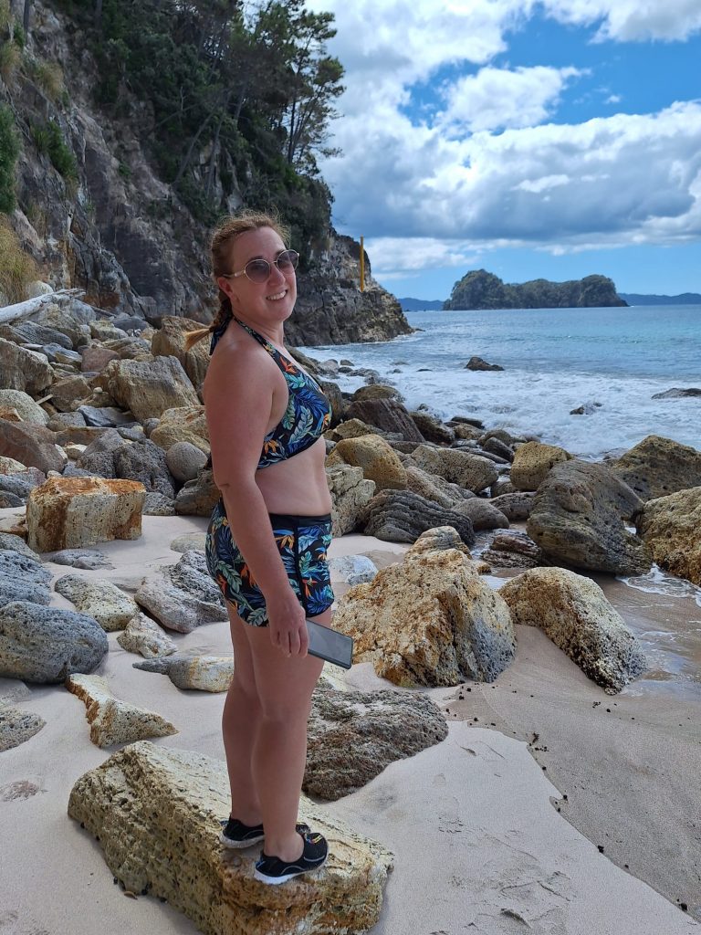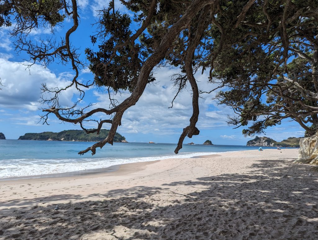 Drove further up the coast to Hahei Beach which looked just like a beach from paradise. We walked the whole length of it before Dave had a swing in a tree and I got wiped out by the waves! Unfortunately the water taxi wasn’t running so we weren’t able to get to Cathedral Cove.