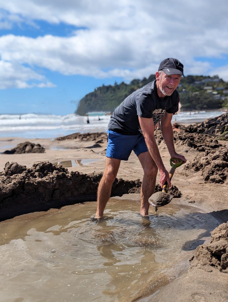 Drove through a variety of countryside including the plains around the Firth of Thames and the southern edge of the Coromandel Forest. Arrived at Hot Water Beach around 11, perfect timing for the tides and hired our spade for the dig. Failed with our first attempt of finding hot water but when we did it was unbearably hot! There was even steam coming off the water. The beach itself was huge but the sea so rough no swimming allowed.