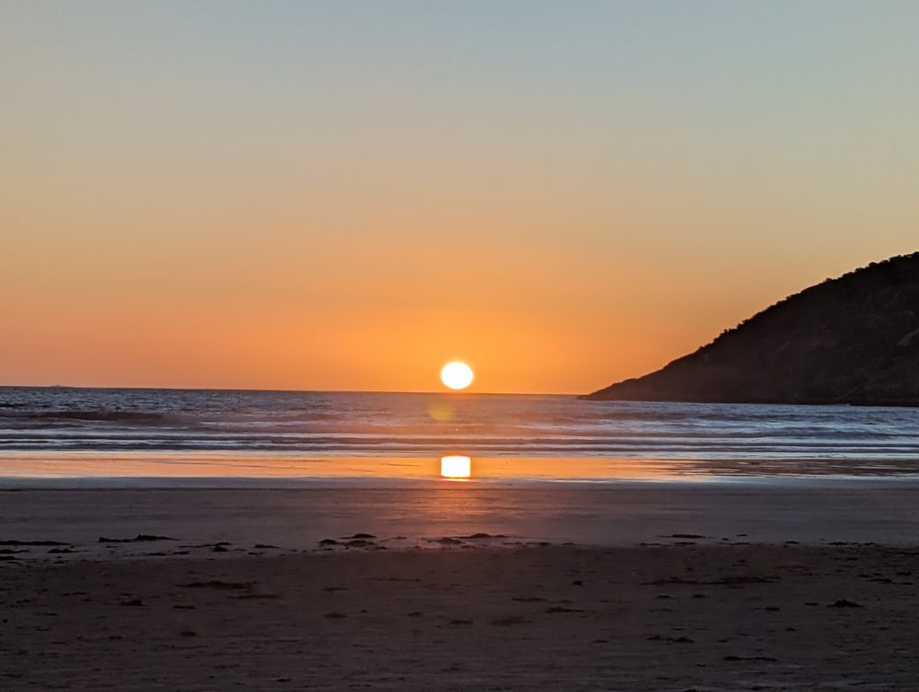 With the sun still shining just gone 7 we decided to have a final walk on Norman Beach. On the way there we actually saw our first wombat, they are so much larger than one would think. We managed to catch the sun going down into the sea before doing the washing up and then having a game or two of Uno.
