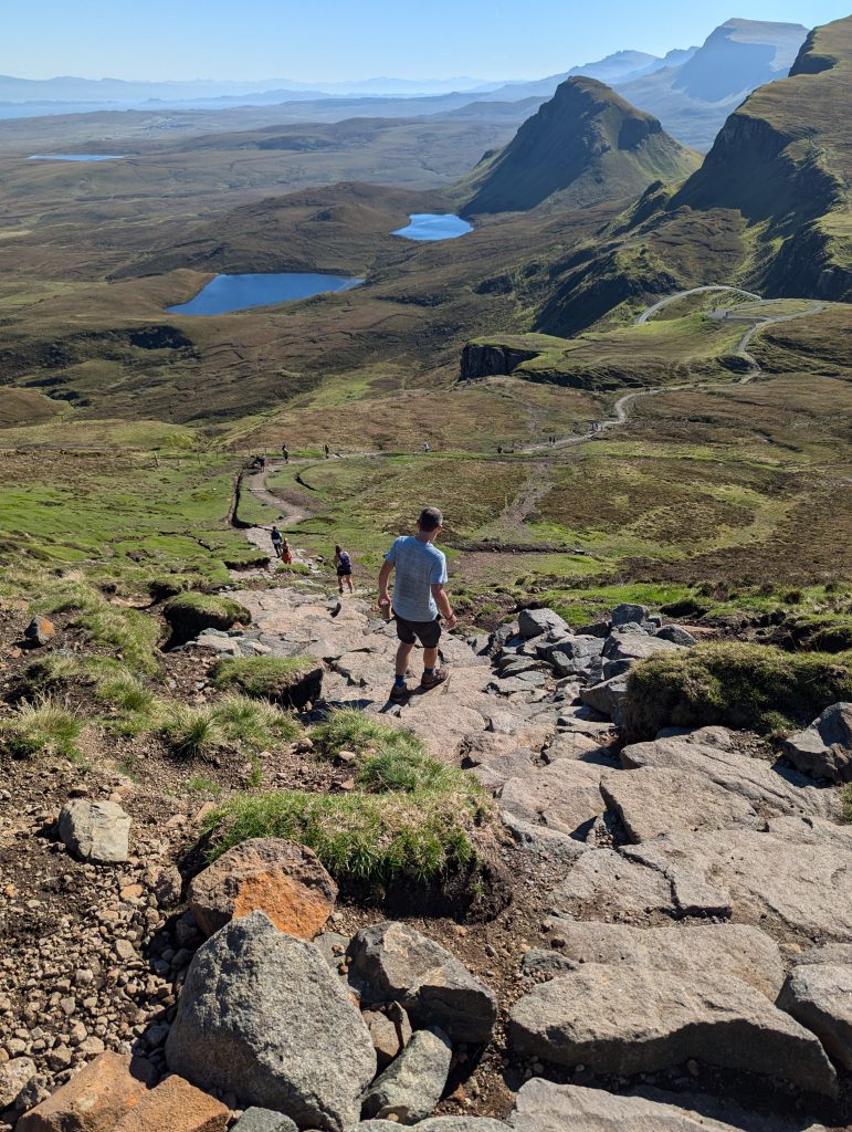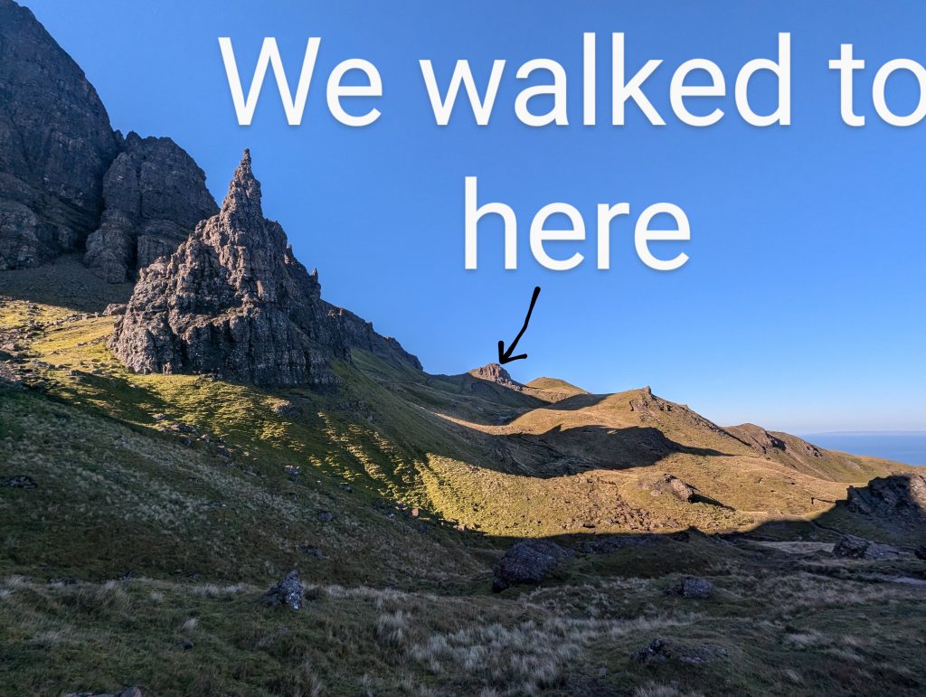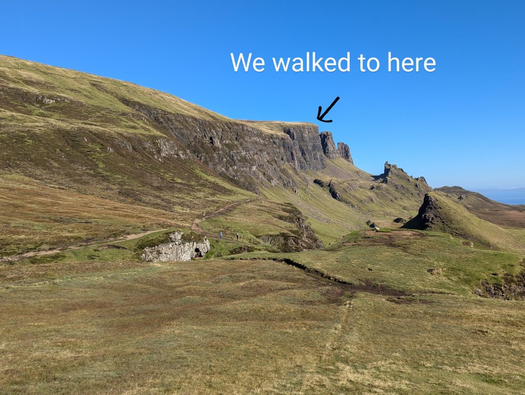 No 4. Quiraing. What can I say, first it was a steep road in on a single track, then the view was outstanding. Then he who doesn’t always know best decided we should just walk a wee little bit to get a better view, so 1.25 miles, 768ft up and 45 mins later we were at the top for quite a spectacular view. Same distance down but only 30mins. Now to get down that road again.
