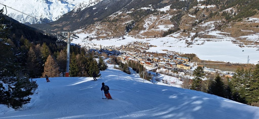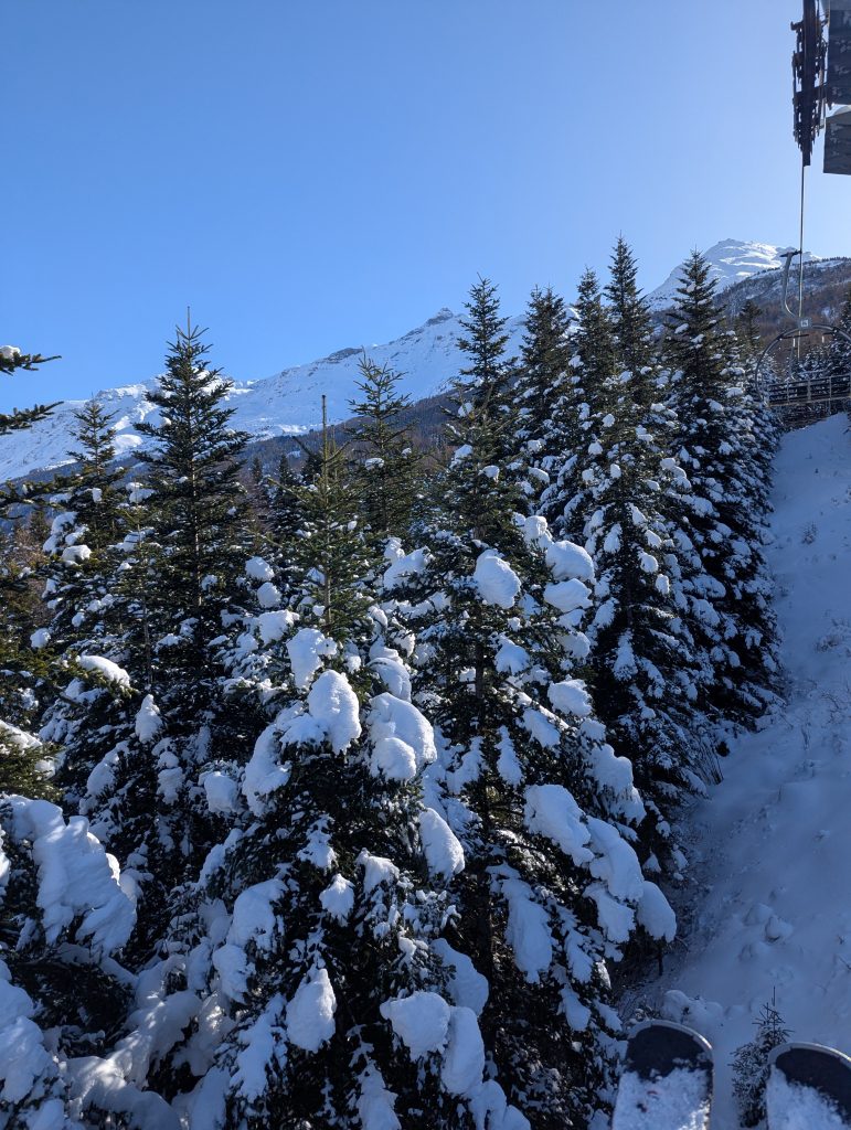 We took another 3 chairlifts and skied 3 more runs, a further 5 miles, so 13 miles for our first day (we thought we’d take it easy for the first day!).