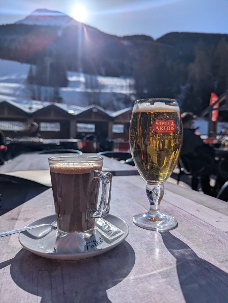 We headed back to the bottom of the slope by our hotel and had some refreshments, chips and a cake whilst sitting in the sun before heading off for the afternoon session.