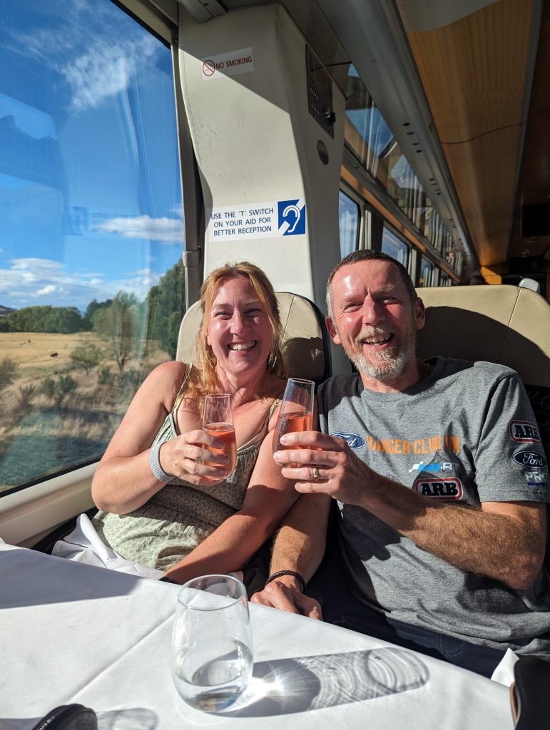 We luckily bumped into Barry and Doreen again who had already booked a taxi so we jumped in with them to the train station. When boarding the train we discovered we were all ‘scenic plus’ this time, so we managed to get seated altogether. This time we had a meal onboard as well as drinks included, the summer love sparkly rosé wine was the best (our first taste of wine of the trip so far). We had such a laugh whilst enjoying the views we even got asked to keep the noise down! (it reminded us of Ego all over again Joan).