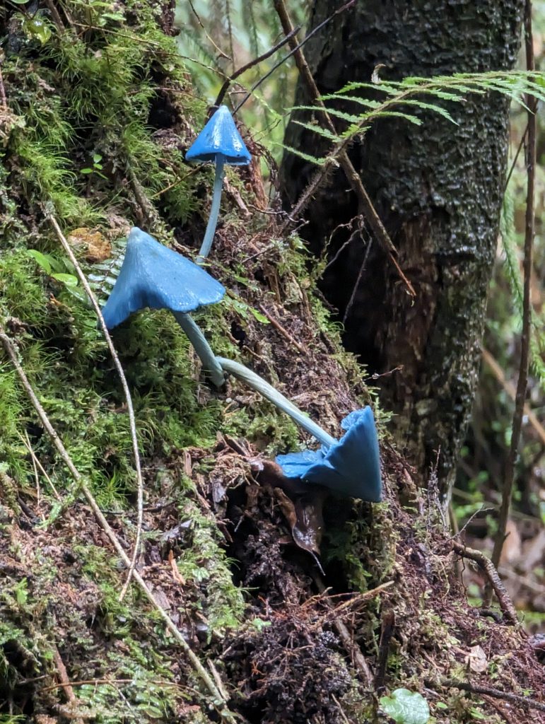 Just after 9.30 we drove into town to find the stone painter and we said hello to him from Ros and Andy. The rain had now ceased so we headed as originally planned to Hokitika Gorge to do a walk there. Unfortunately because of the amount of rain, the river was all churned up so not it’s beautiful blue colour but nevertheless still wonderful. We did though find some blue mushrooms on route!
