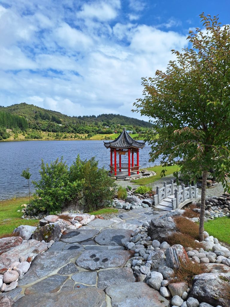 We began our journey to Fox, first stopping on the edge of Lake Ross where we decided to have a spot of lunch as the sun was now out. There was a beautiful Chinese memorial garden to the Chinese goldminers here. We then decided to take Mabel to the beach for a quick look at the ocean before finding an old disused rail bridge.