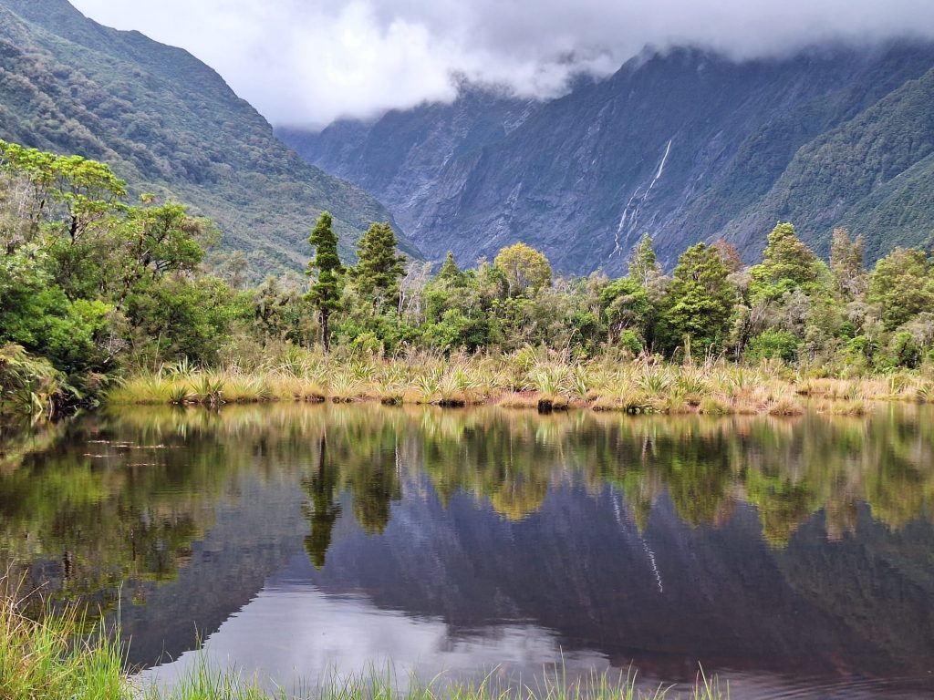 Time was getting away so we headed straight to Franz Joseph Township, we now had hailstones and heard a tornado had hit just 90km up the road. By the time we stopped though the rain had ceased and we managed to do a walk taking in the Franz Josef Glacier (from a distance, you can only get on it by helicopter these days) and Peters reflection Pool.