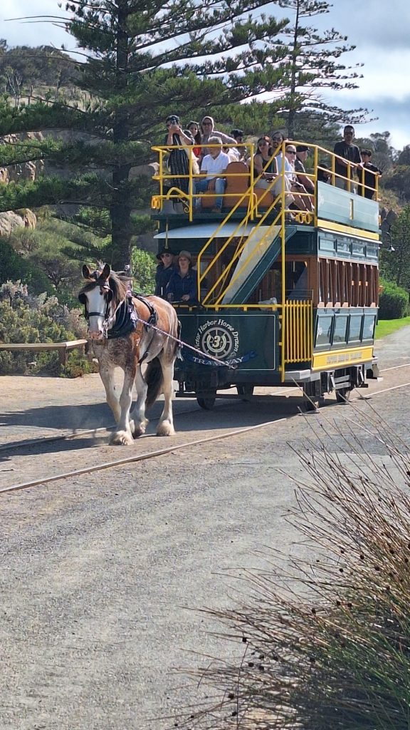A further 45 minutes later we arrived in Victor Harbour. It seemed fairly busy so we headed to the shoreline and parked up. We walked along the front where we decided to walk over to Granite Island. There is a causeway of 632 metres which you can walk or get the horse drawn tram which has been running on and off since 1894.