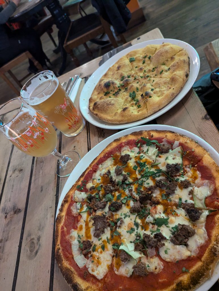 Weather not too bad Lewis. A bit of sunshine & rain. Garlic bread was fine actually along with the venison pizza & beers!