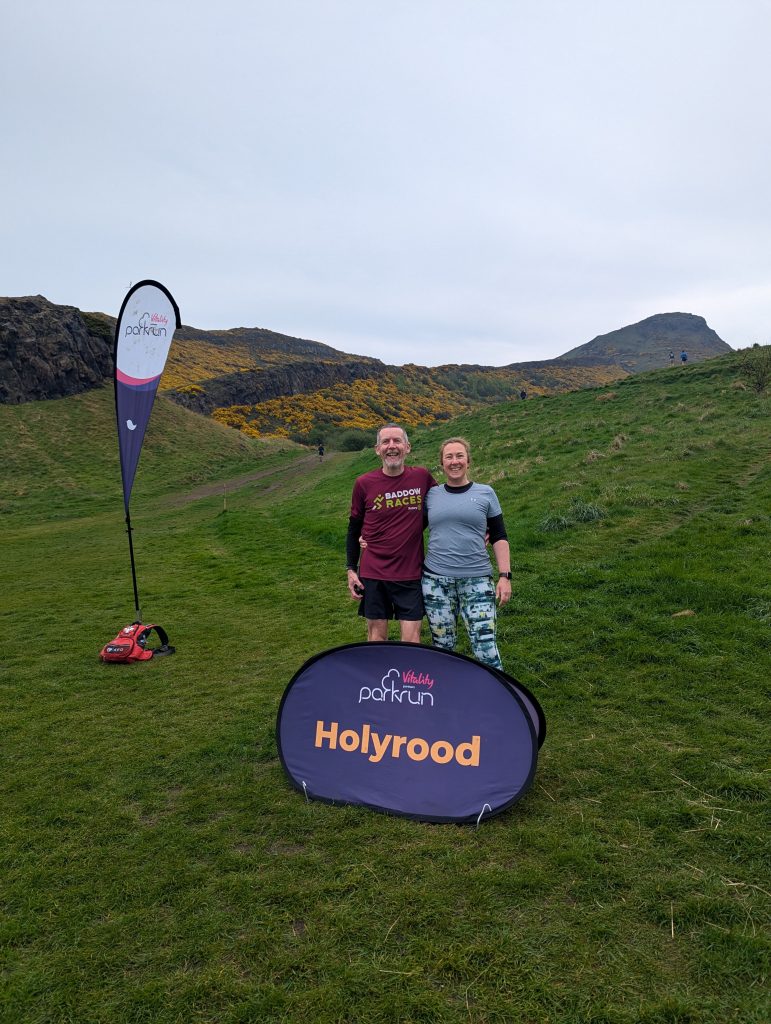 With the alarm set for 7.10, we dressed and had a quick breakfast (TC – croissant, DC – porridge) before leaving at 8.20 for a brisk walk to the park near Holyrood Palace. Time for a wee and the first timers talk and we were off at 9.30. Scotland Parkruns start half hour later than English ones for some reason.