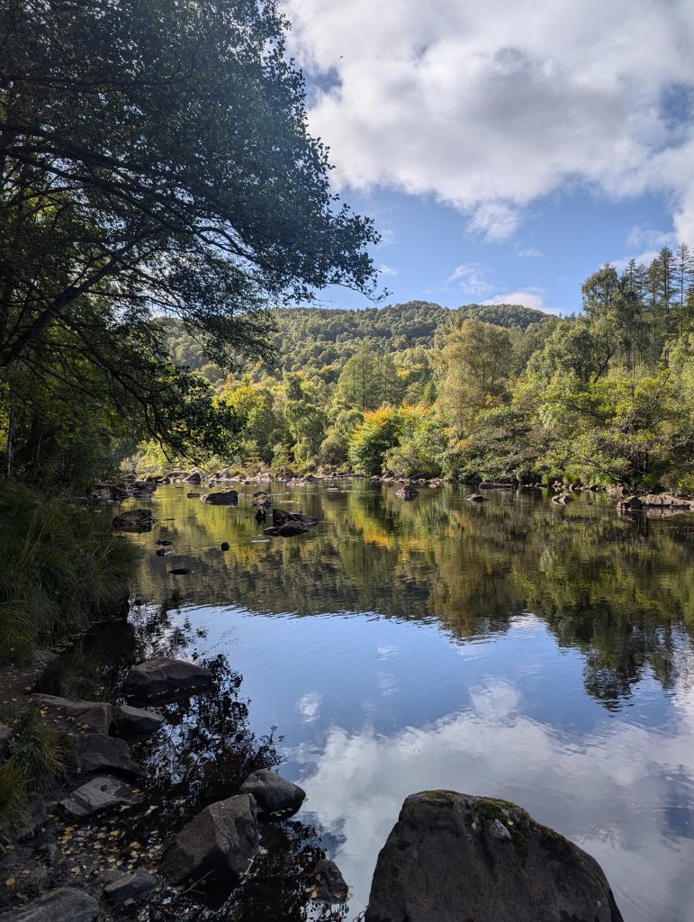 After a quick stop at The Black Isle Brewery where we stocked up on some of the beer that we drank last night, it was onto Rogie Falls. By now the sun was blazing and when we reached the waterfall and swing bridge it felt that we really could have been back in New Zealand – it was a stunning setting.