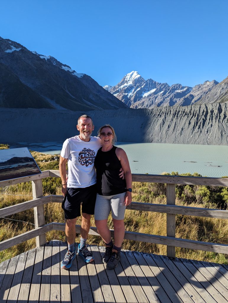 We then had to back track to Lake Pukaki (where the water was as blue as the previous one) where we stopped at an amazing viewpoint (overlooking the lake with views of the snowy peaked mountain where we were heading later) and made our normal sarnies for lunch.