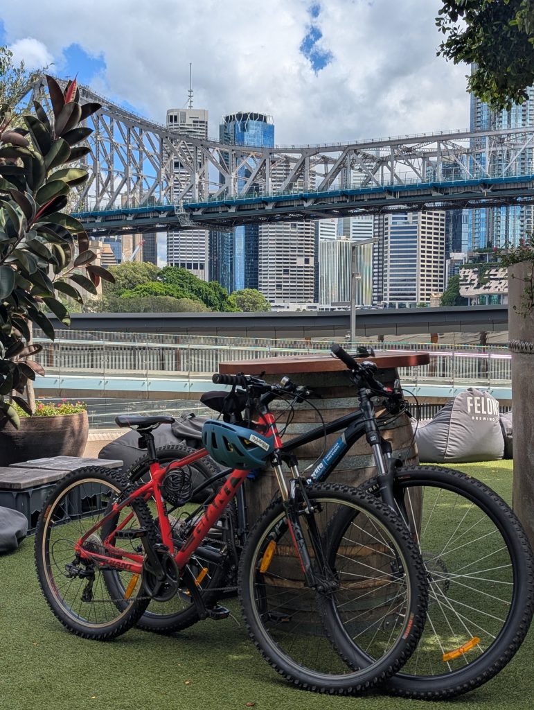 Deciding to now head back we cycled back the way we came until we got to the Story Bridge which we cycled across, we then crossed back almost immediately on the Kangaroo Point Bridge, cycled through the Botanic Gardens and round to the casino where we crossed the river again using the Neville Bonner Bridge before cycling back along the South Bank past Kangaroo Cliffs to the bike hire shop. Total distance just under 20 miles!