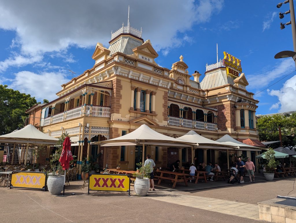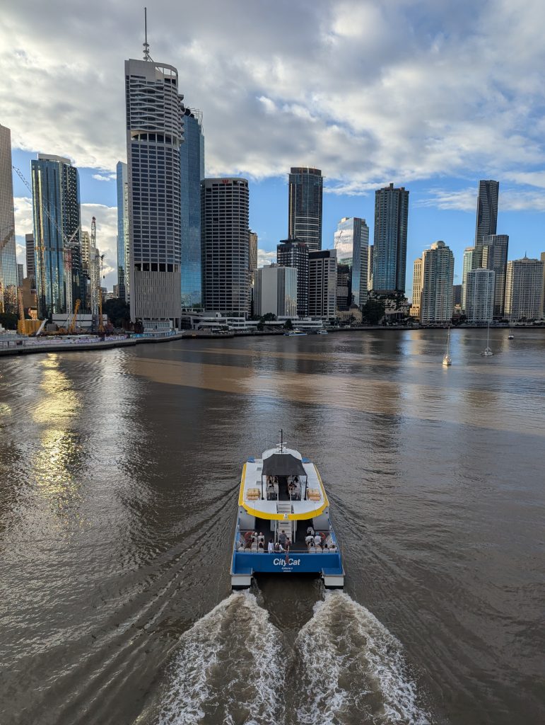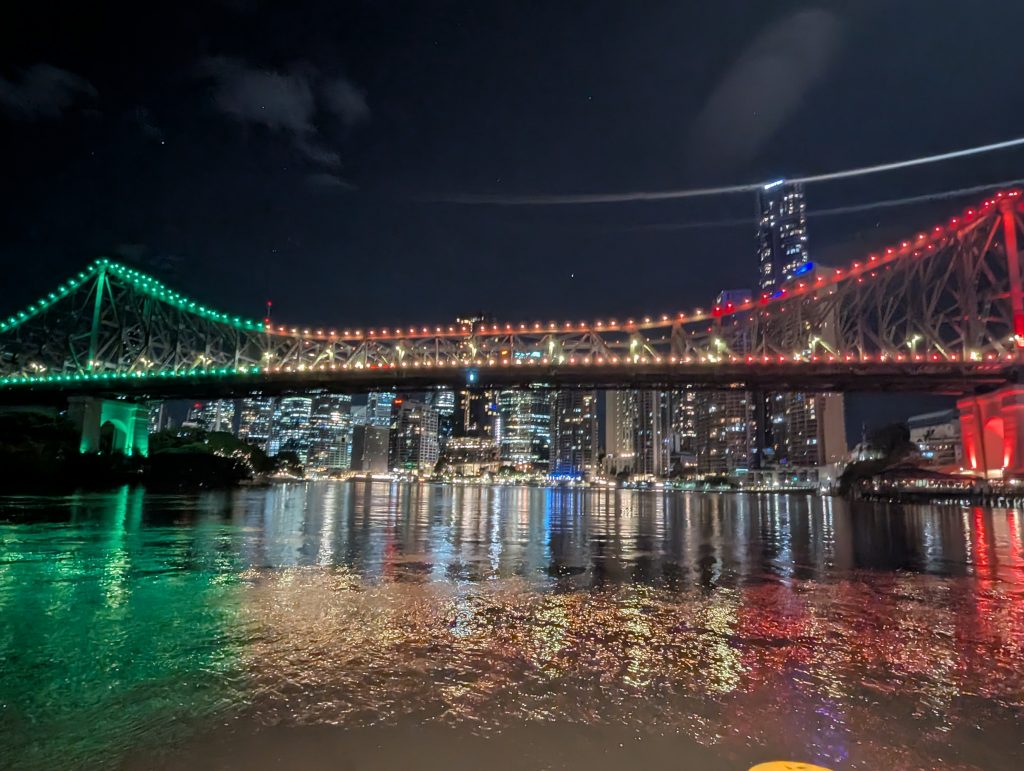 We then decided to walk to the big beer hall – Felon Brewery as we had seen there was live music on. The atmosphere of an evening was so different from our lunch time experience, it was buzzing. We only grabbed one drink as it was a dj set which isn’t really our thing, lucky actually, as we then managed to get the last city cat boat back (at a cost of 25p) to the QUT garden stop and then just take a very late walk through the Botanic Gardens back to the hotel.