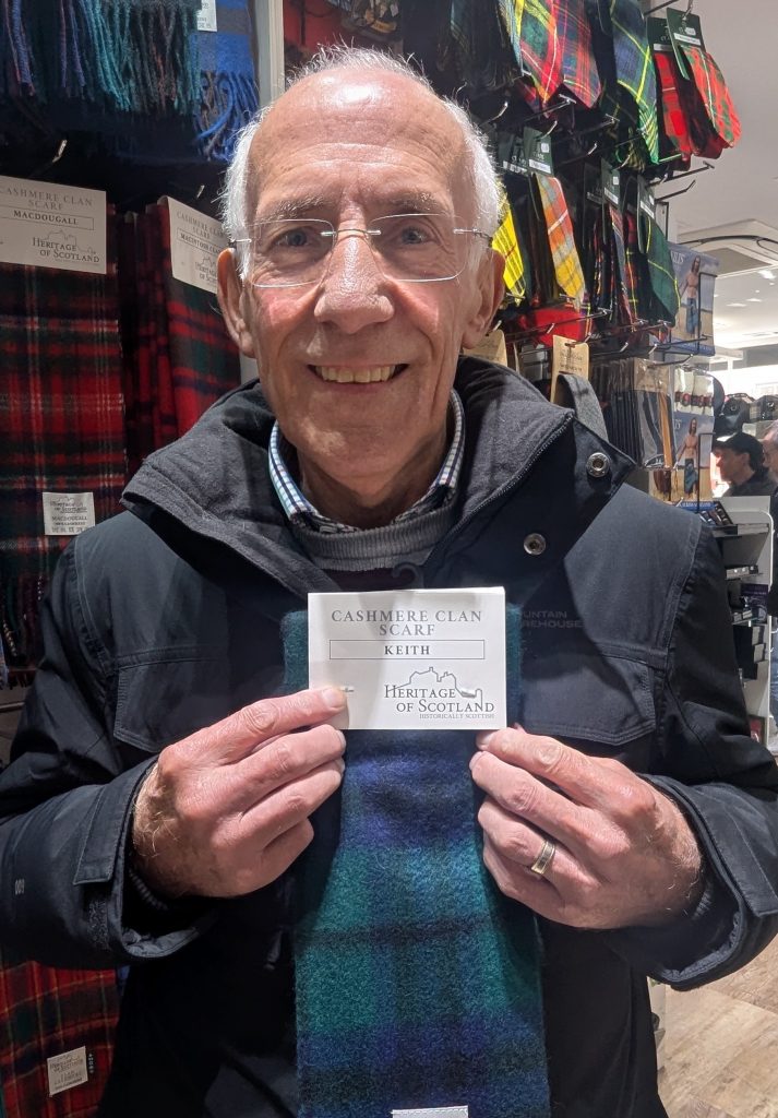 A short while later we had one happy dad, with the purchase of a cashmere scarf in Keith Clan Tartan.