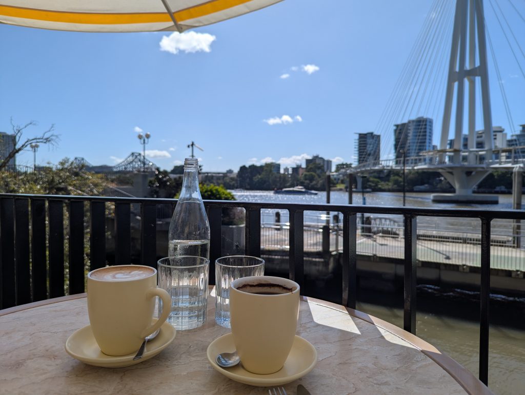 Our last full day! Up and out at 9 to walk the few steps to the end of the street for breakfast at an adorable cafe on the river edge by the Kangaroo Point Bridge. Didn’t realise we were meant to book but we got a table anyway.