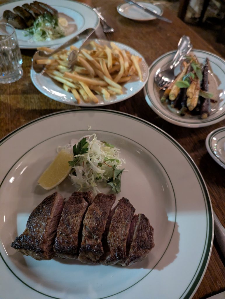 At the end of the road there was an oldy worldy steakhouse called Walters and we got a table for 2. We both had New York Strip steaks, cooked perfectly with some skinny fries and heirloom carrots, followed by hot pecan pie and schlag (whipped cream). With another double surcharge, this was our most expensive meal! But it was a lovely final dinner to our amazing trip down under.