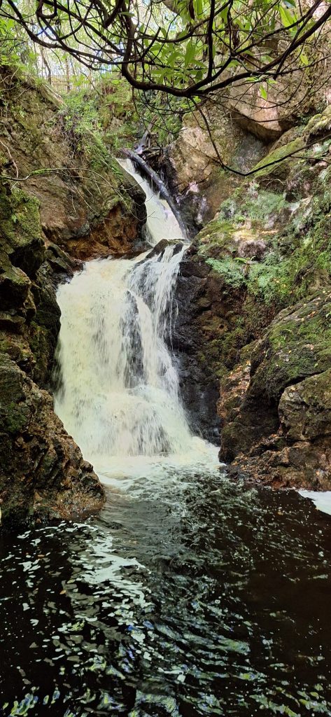 We then did the Big Burn walk, a 2 mile round walk criss-crossing the Golspie Burn on little wooden bridges until we reached the falls. Very lucky with the weather with the majority of it done in sunshine.