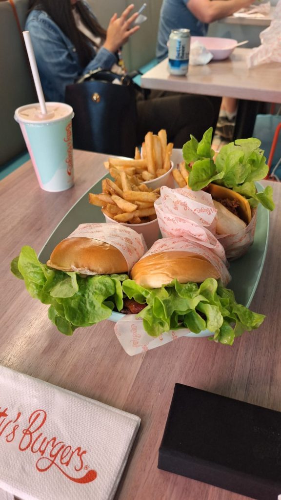 The plan worked a treat and we all continued our journey into Melbourne. Our first stop was a short walk to Queen Victoria Market. The sun was fully out and was quite hot. After a stroll around here we headed out to Izzy’s favourite burger joint for lunch called Betty’s Burgers which was more into the city centre.