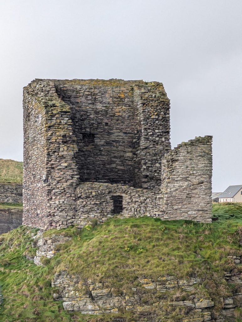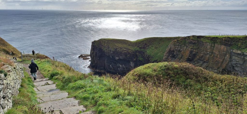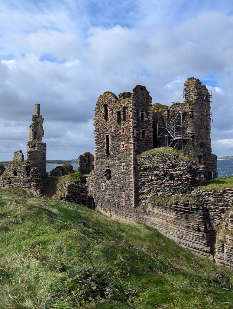 Next a short drive followed by a little walk to Castle Sinclaire. It was blowing a hoolie but at least the rain had stopped and the sun was trying to come out. Must have been amazing in its day.