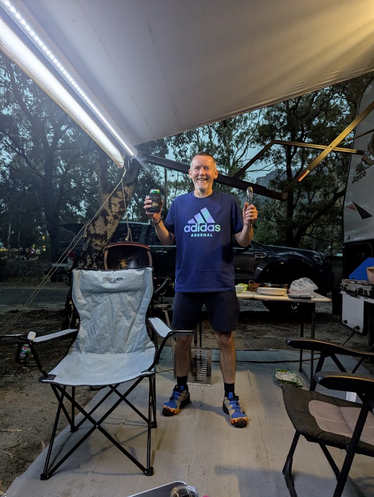 Some kangaroos came down to watch us eat our yummy dinner which we were unfortunately eating under Colin and Elaine’s awning as it had began to rain.