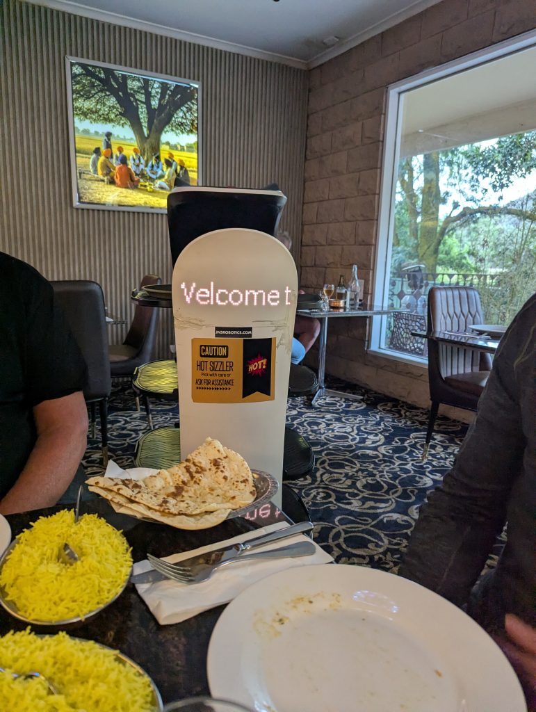 At 6 we headed up to the Indian restaurant which was lovely if a little different to what we would normally have and the food was served to the table by robots!