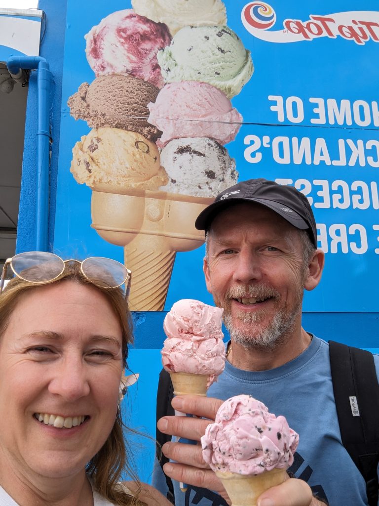 The plan, a 4 mile walk up to Mount Victoria (an extinct volcano) and then onto the viewpoint at North Head, lovely walk, thank God it was overcast. Did manage to grab our first ice creams of the trip though!