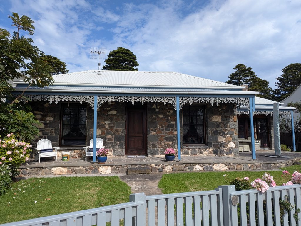 By 10 and with the sun shining and the winds from yesterday abated we left the site on foot, with a bit of a long walk planned. First into town, then down to see the footbridge over Moyne River, along the wharf and then onto and around Griffiths Island to see the lighthouse and some of the 10,000 Mutton Bird which live here. Then onto the chip shop (to fill our pre-made buttered rolls) for lunch, then back into town to see some of the oldest buildings along the GOR. (Albeit we have technically finished the 150 mile stretch which started at Torquay and finished just before Warrnambool) With tired legs we skipped the remainder of the buildings and had a schooner of beer in the garden of The Stump, holding the oldest continually licensed pub in Victoria. Heading back to our site we detoured to have a walk along East beach having walked just over 7 miles in total.
