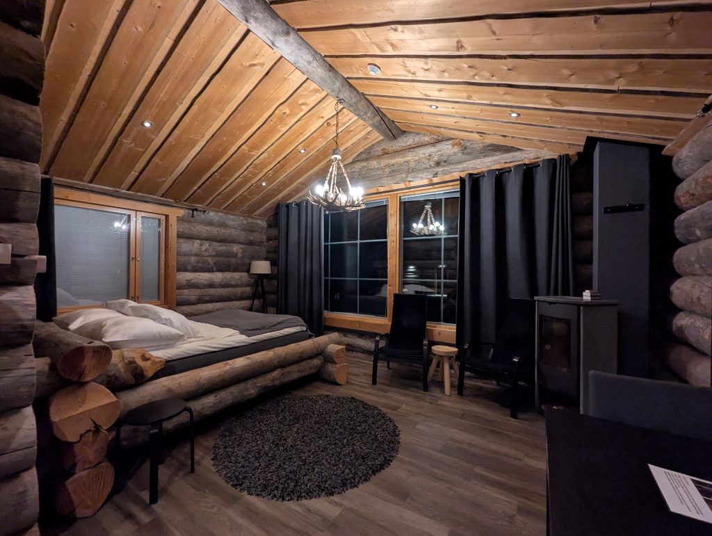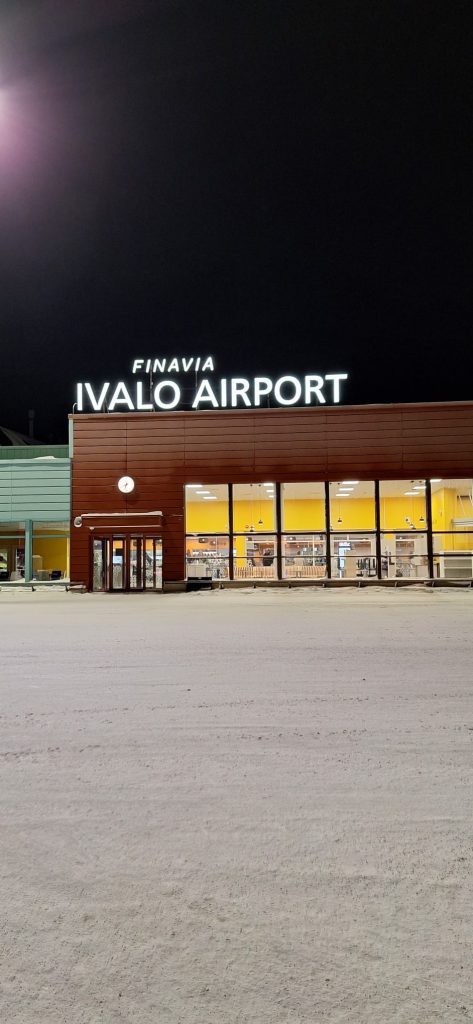 We finally landed at Ivalo airport at 6.40 to snow on the ground and the temperature just under freezing. With no passport control we had a little wait for our luggage and then were on the coach for our 40min transfer to the Muotka Wilderness Hotel.